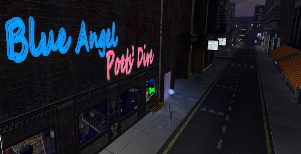 In addition to the Art Walk an ekphrastic POETRY CONTEST is happening. Write a poem about any artwork in Chelsea’s 4th Annual Art Walk (http://maps.secondlife.com/secondlife/Lanestris/128/183/104) and you could win L$1500. Just put your legacy and user avatar names and the name of the art piece your poem is about and deposit it into one of the cylinders on either side of the Art Walk. Entry deadline is july 18th. More than one entry is allowed. Winners to be announced at Sunday Spoken Word and the Blue Angel Poet’s Dive on July 20th, at noon and 4PM respectively.