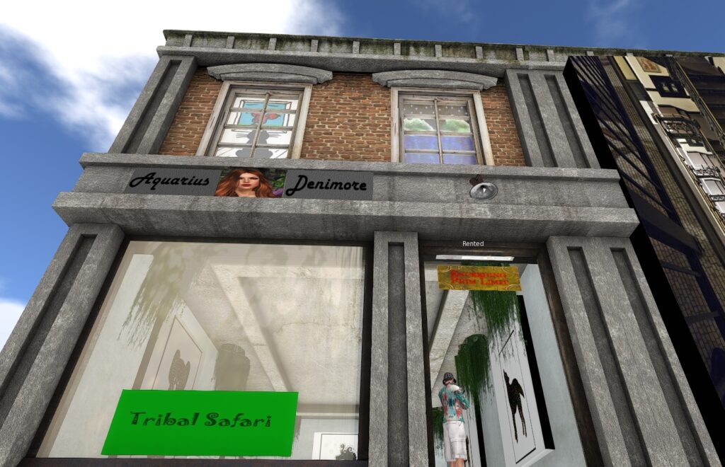 In RL Aqurius Denimore is an amateur artist creating digital art in GIMP and PaintShop Pro. Her work incorporates atmospheric colours and elements to tell the story of the pieces. As well as gallery art Aquarius also works in mixed media and crafts and has recently developed a fascination with Australia Aboriginal art forms which you can find represented both outside and on the roof of the gallery.